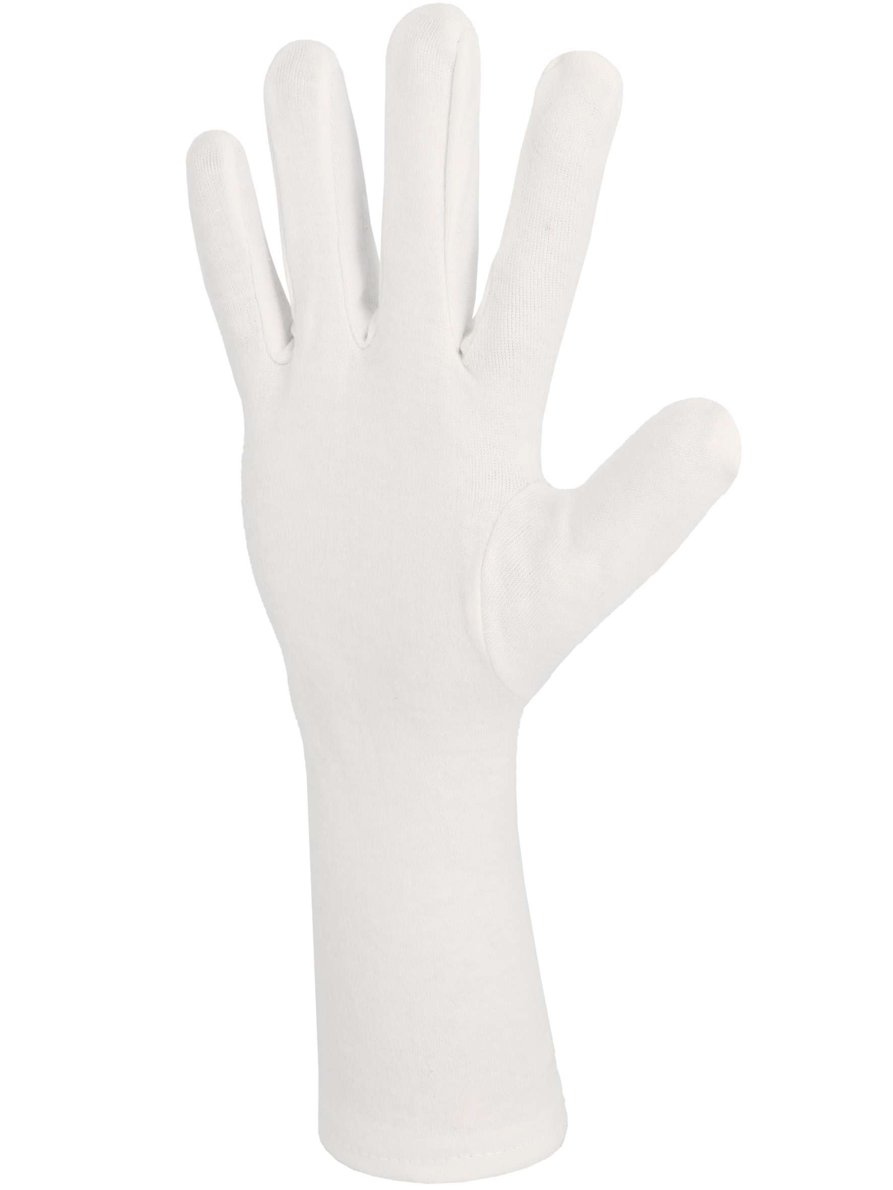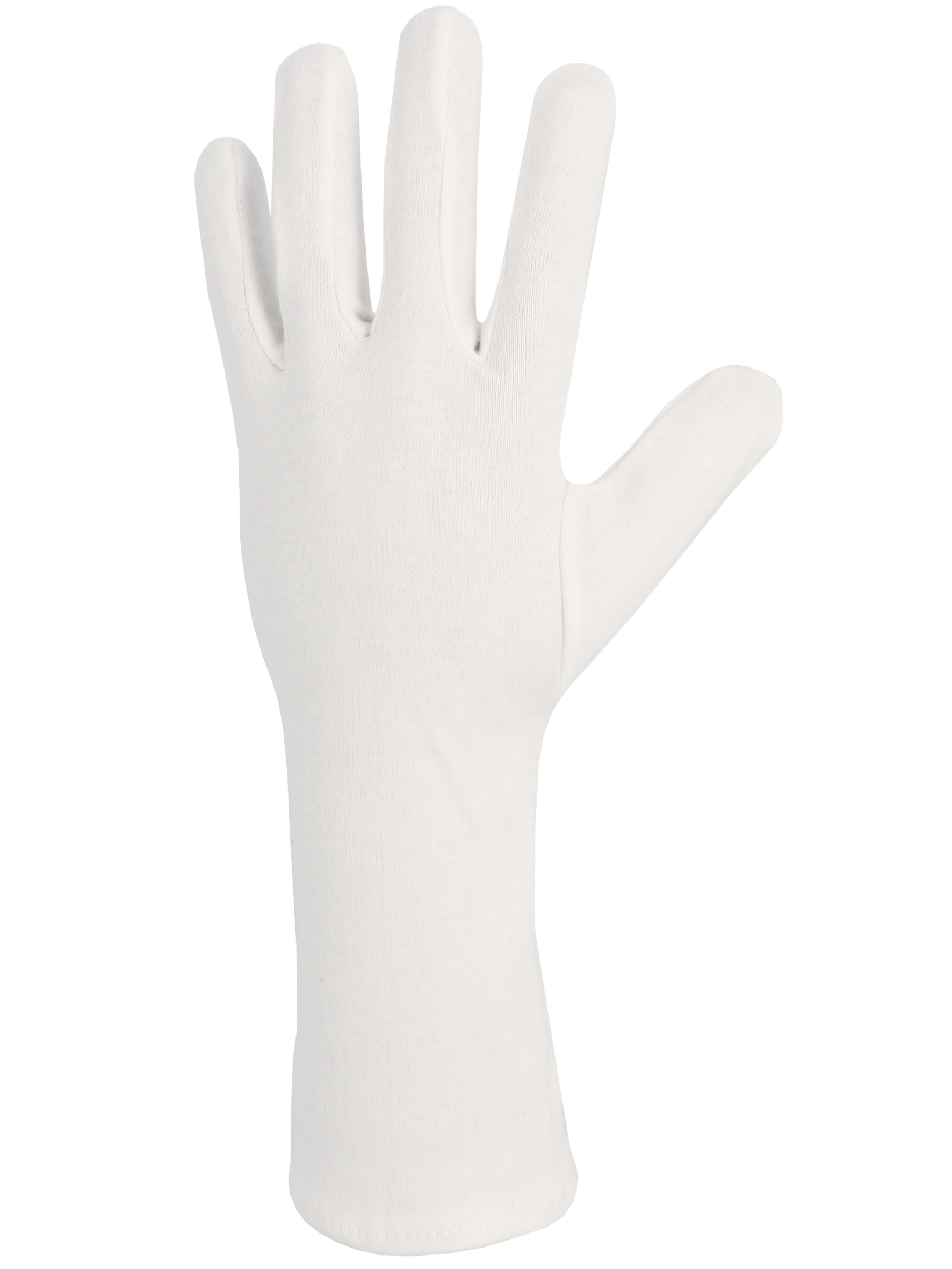Gant coton Interlock blanchi avec ourlet. Longueur 35 cm.