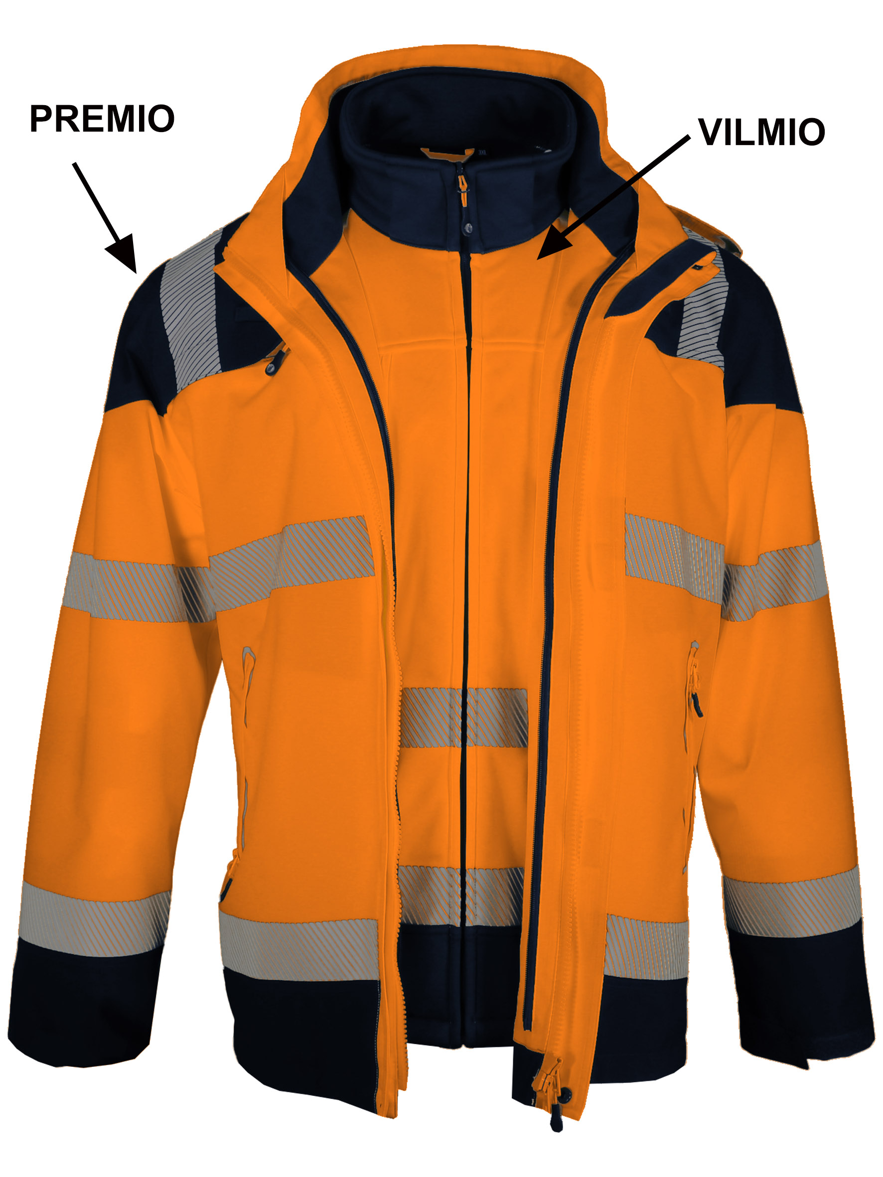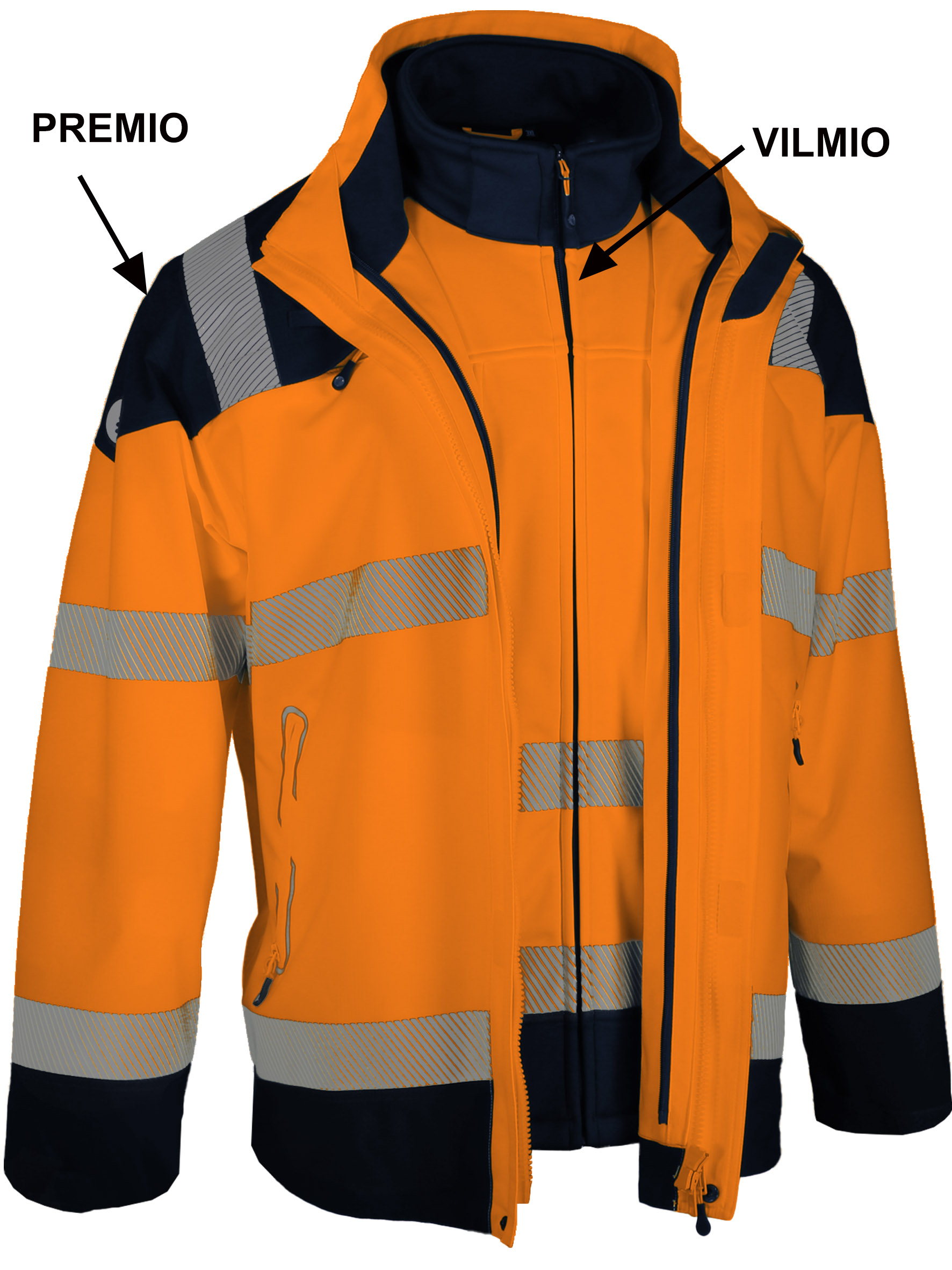 Veste haute visibilité softshell. 2x1 manches amovibles. 100% polyester