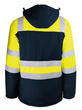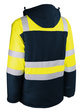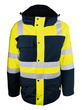 3 buitenzakken en 1 binnenzak. Ritssluiting (dubbele glijder) onder klep met drukknopen. Gebreide pols onder de mouwen. Retroreflecterende stroken. Ritssluiting voor zeefdruk.