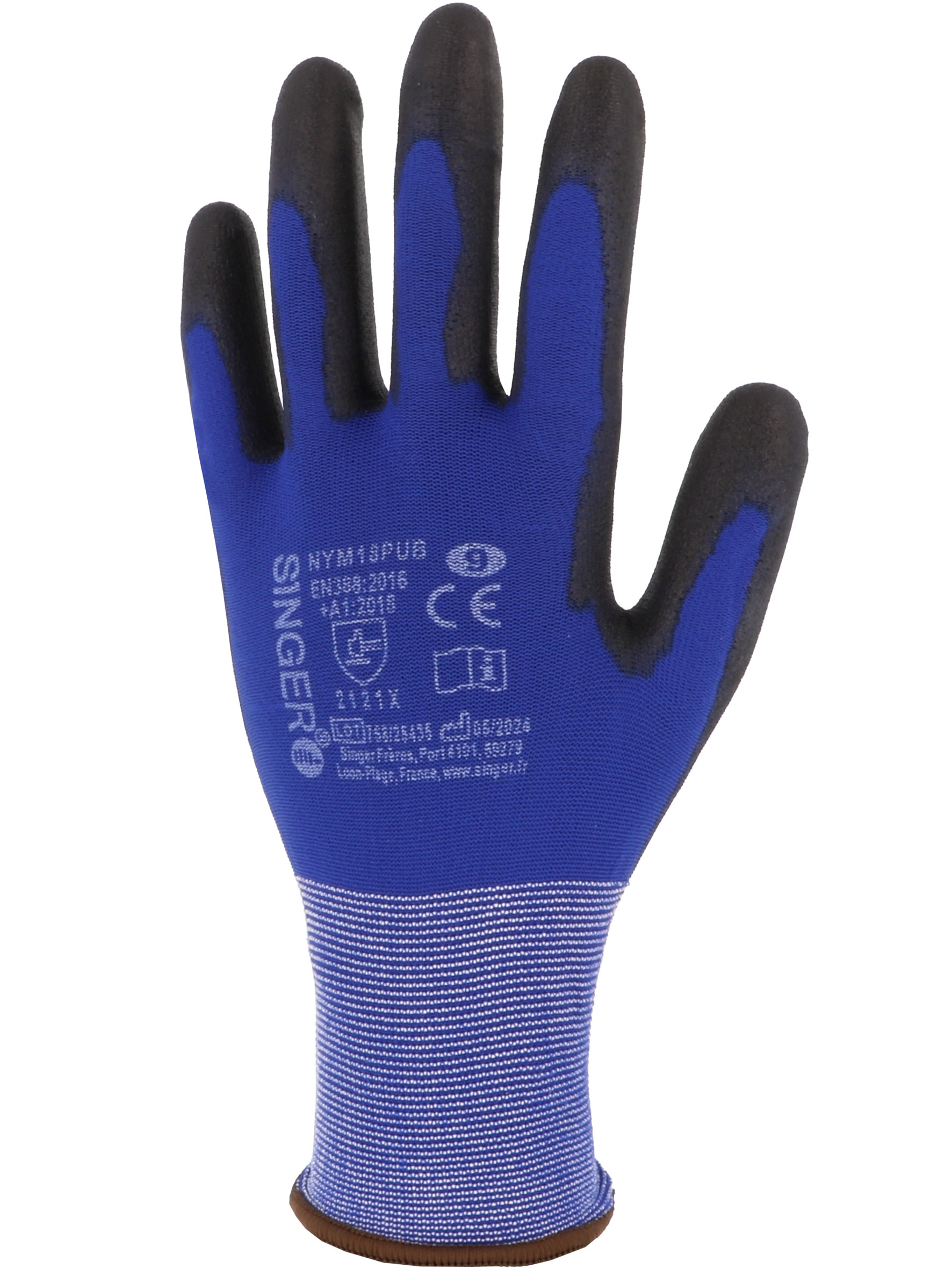 Recobrimento: Poliuretano (PU) em palma e no dorso, na extremidade dos dedos.