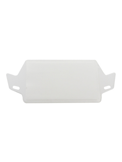 Porta identidade em plástico semirrígido.